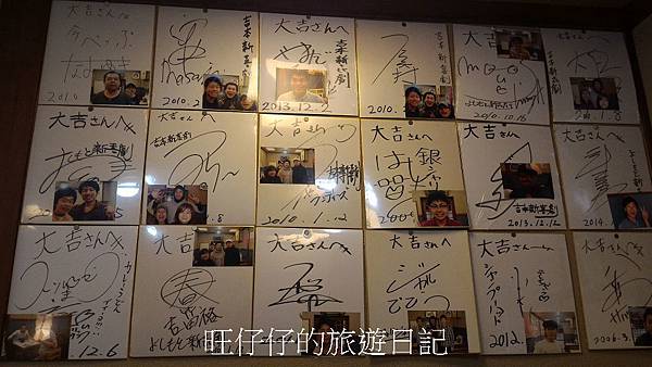 這家大吉應該頗有名, 店裡掛了很多日本名人的簽名, 上面居然有旺仔爸認識的日本藝人!!