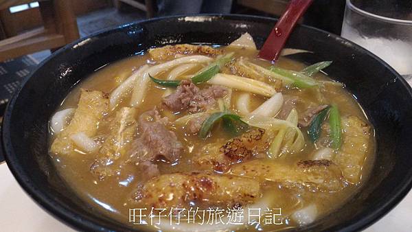 咖哩烏龍麵, 有蔬菜和豆皮, 湯汁很濃很好吃, 這個是芮芮點的