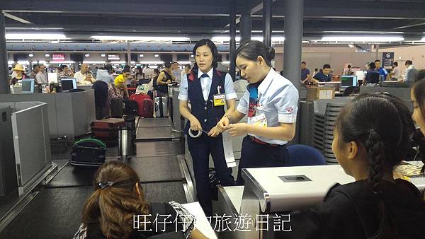 海關人員給我們一張牌子, 要我們再回去航空公司櫃台托運, 等一下用這個牌子就不用再排隊, 可以走快速通關的門