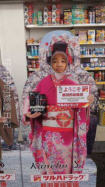 趁旺仔媽在買東西的時候, 旺仔仔發現店門口有這個人形立牌, 是穿粉紅色和服的喔~~~